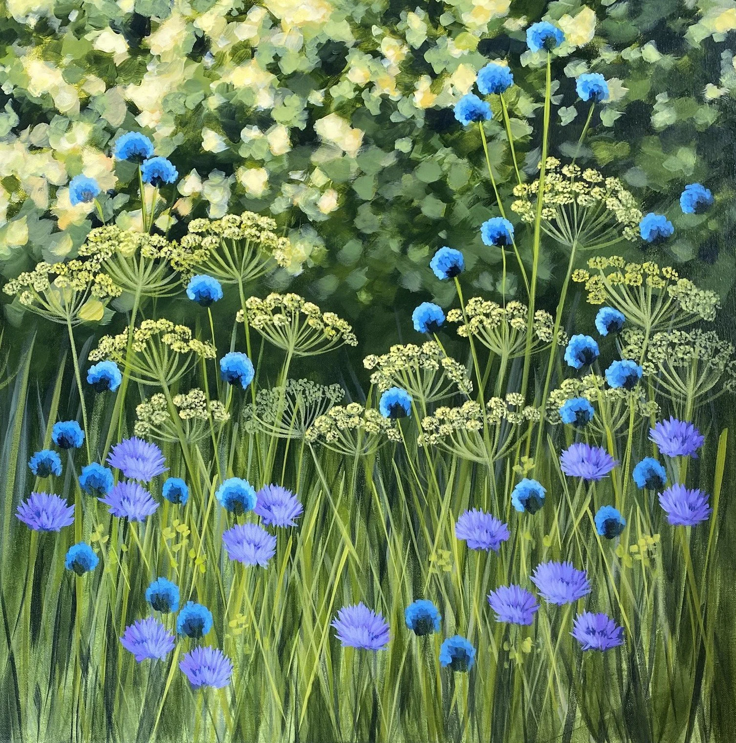 I enjoyed this painting so much I decided to paint it a second time. I intended to add in the pink flowers at the bottom (as in the first painting) but at the last minute kept them out. I love hearing how some people love the painting without and some like it with the pink flowers added!